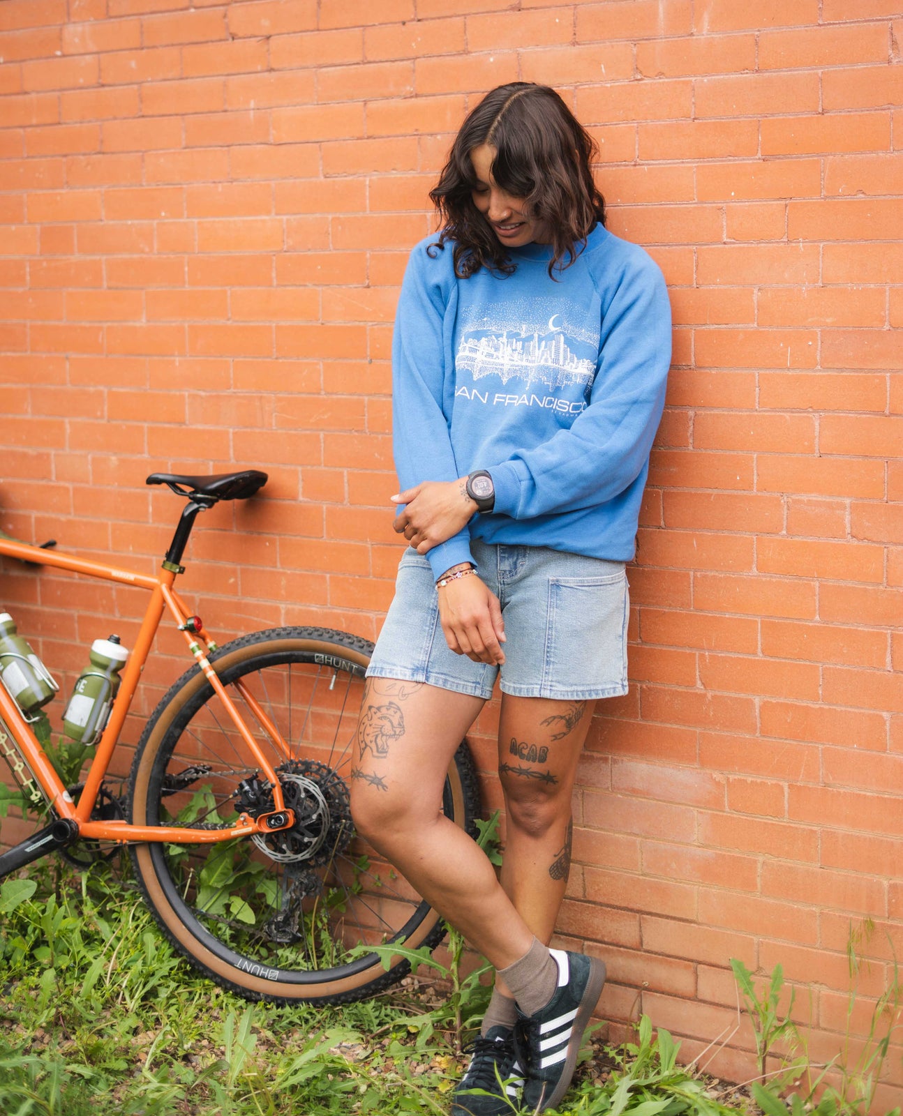 This style runs small, so size up for best results. Alyssa (blue long-sleeve) is 5'6", 140lbs wearing size 27.