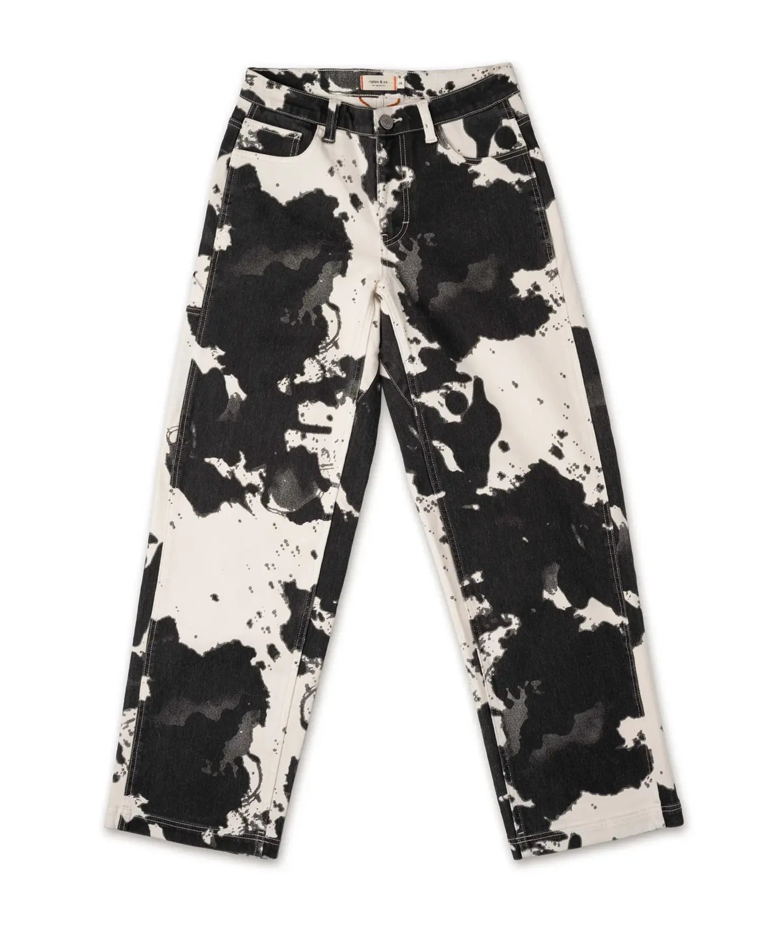 We started this psychological journey with our 10-ounce twill for the optimal blend of rugged structure and flexibility for daily J'action. Then we dyed it for a style that hides medium-to-large squid ink stains. Every item has a unique pattern due to the printing process.