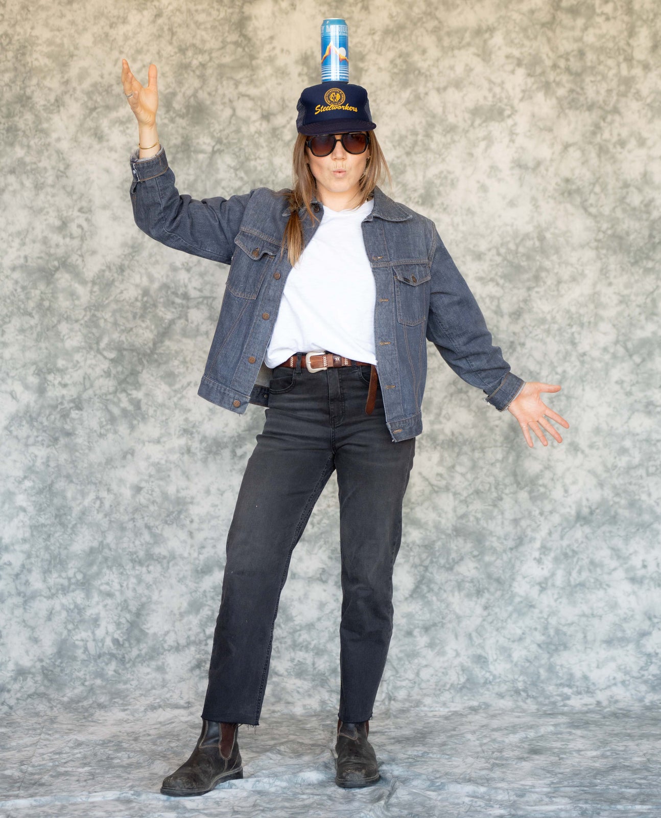 Girl with bucket on her head is 5'6", wearing size 27. Mo (mountain biker) is 5'10", wearing size 26. Brit (orange shirt) is wearing size 27.